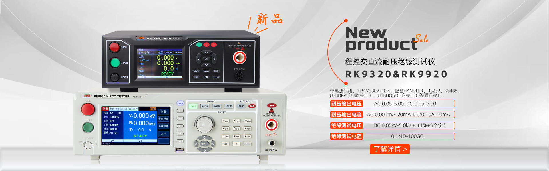RK9975-10/RK9975-10A/RK9975-10B程控超高壓測試儀RK9975-10: AC 輸出電壓:(0.10~10.00)kV 輸出功率:1000VA(10.0kV 100mA) DC 輸出電壓:(0.10~10.00)kV 輸出功率:500VA(10.0kV 50mA) IR(定制功能) 輸出電壓:0.10KV-5.0KV 測試精度:± (3%+5 個字) RK9975-10A: AC 輸出電壓:(0.10~10.00)kV 輸出功率:1000VA(10.0kV 100mA) DC 輸出電壓:(0.10~10.00)kV 輸出功率:500VA(10.0kV 50mA) RK9975-10B: AC 輸出電壓:(0.10~10.00)kV 輸出功率:1000VA(10.0kV 100mA)RK9975-10/RK9975-10A/RK9975-10B程控超高壓測試儀 -